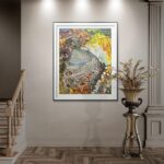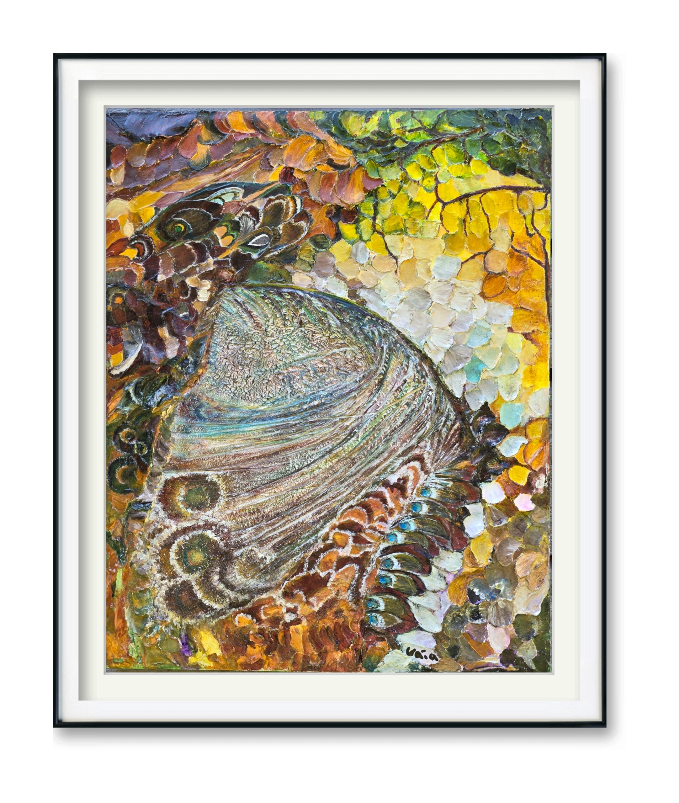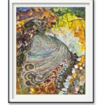 A mosaic of luminous scales unfolds across the canvas, shimmering with golds, greens, and violets. In the center, the delicate curvature of a butterfly wing transforms into a landscape of infinite detail — veins, patterns, and textures resembling both jewels and the layered earth. The painting radiates fullness: an overflowing harmony where nature reveals its richness not in grandeur, but in the quiet intricacy of every fragment. Abundance here is not excess, but the inexhaustible beauty hidden within the smallest forms of life.