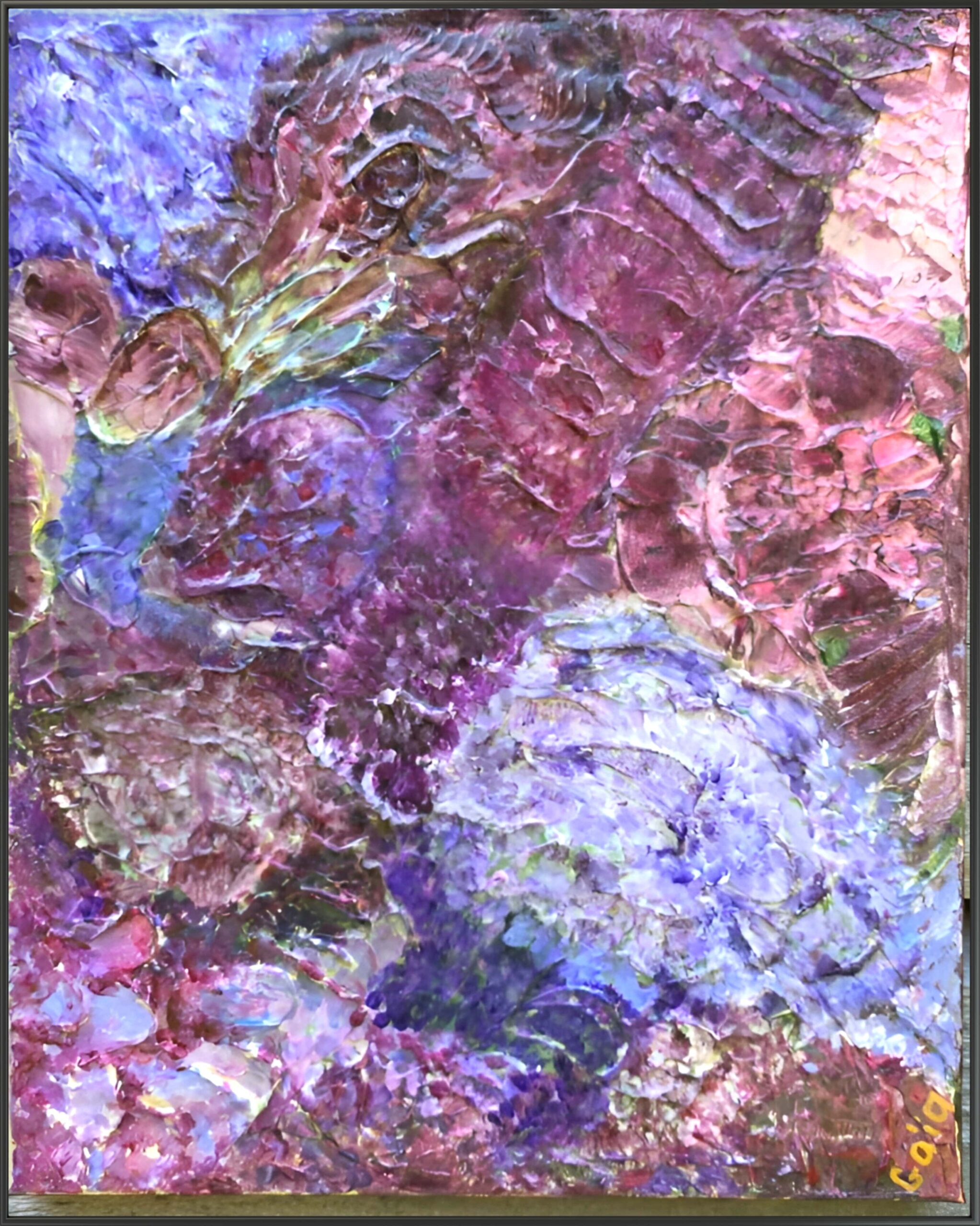 This painting is an emotional symphony of textures and shades. The deep violets, pinks, and muted blues swirl together, creating the impression of both turbulence and serenity. Faces and forms seem to emerge from the layered strokes, as if the canvas is alive with subconscious visions. “Mood” is not a fixed state but a flow — shifting, elusive, and richly complex, capturing the inner landscapes of the soul.