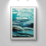 The canvas captures the raw power and elegance of the ocean. A mighty turquoise wave rises, curling in perfect motion, as if about to embrace the horizon. The play of white foam against deep blues and blacks gives the water both depth and vitality, creating a sense of endless movement. This is not only the sea, but also a metaphor of energy, freedom, and the eternal rhythm of life — unstoppable, fluid, and ever-renewing.